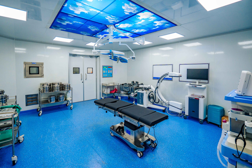 Functional Serenity: The surgical suites showcase a masterful blend of hygiene and design. The stark white, sterile environment is dramatically punctuated by a signature feature: a backlit ceiling panel depicting a blue sky with clouds. This simple, powerful element reduces anxiety and creates a sense of openness, proving that the architecture itself contributes to the patient's well-being.
